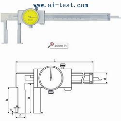 A635552:細(xì)尖爪帶表卡尺:測(cè)量范圍mm:0-150;分辨力mm:0.02;Lmm:236;amm:40;bmm:21;cmm:16.5;dmm:16;A635553:細(xì)尖爪帶表卡尺:測(cè)量… |