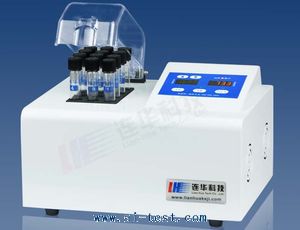 消解溫度:+100-165℃,精度:0.1℃,溫度波動度:±0.5℃,定時誤差:5s/h,可做COD、總磷、總氮的消解,消解樣品數:12個 |