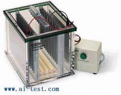 外形尺寸(L×W×H):242×132×105mm凝膠板規格(L×W):85×80mm試樣格:12、15齒,1.0、2.0mm厚重量:約1Kg緩沖液總容量:約500ml |