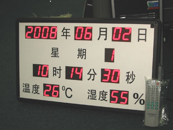 溫濕度萬年歷數碼顯示屏應用:實時顯示現場溫濕度、年月日、時分秒,主用于生產車間,機房,倉庫,車站,候車(機)室,圖書館、高尚住宅。參數:… |