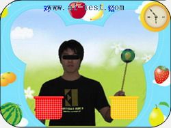 接水果:魔幻游戲中,小朋友自己手捧可愛的小果籃,接住掉下的鮮亮可愛的水果,并按不同顏色放進大的籃筐中。小朋友的觀察力,顏色認知的能力,手… |