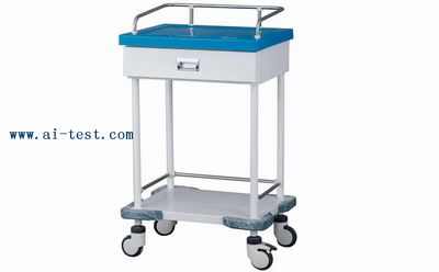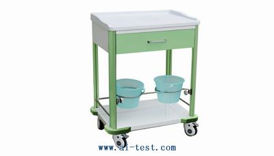 護理治療車包裝:1只/箱備注:上臺面為彩色人造瑪瑙石,2小抽,配二只可轉動塑料污物,臺面尺寸:660*420規格:720*480*930 |