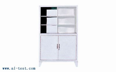 不銹鋼雙門器械柜(普通式)Ⅱ型備注:上玻璃拉門,下不銹鋼雙開門,上、下各有兩層隔板規格:1100×450×1800 |