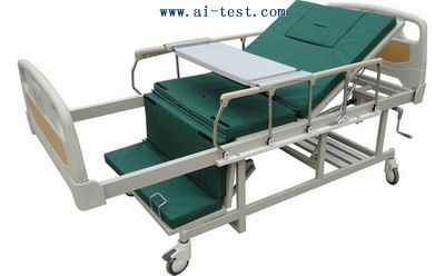 普通特別護(hù)理床備注:噴塑床頭、床體,手拉開啟便盆,折疊式護(hù)欄,背部、腿部可升降,有輪,床面尺寸:1960×700×615規(guī)格:2020×770×920 |