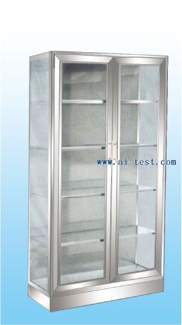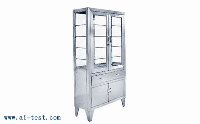 不銹鋼雙門藥品柜(Ⅰ型)備注:玻璃雙開門,內有三層階梯板和一層平面板規格:1100*450*1800 |
