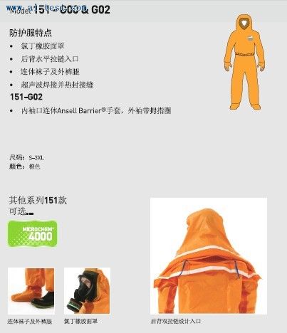 AM515013 | 緊急救護全身防化服帶手套:尺碼:XXL;包裝規格:8件/箱;品牌:英國MICROGARD | 1箱 | 1700元/箱 | 洽詢 | 備注 | |