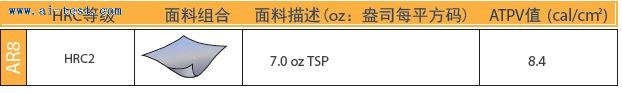 8cal/cm 、8.4cal/cm 、8.7cal/cm 多種等級選擇。 采用7.0 oz 面… | 洽詢 | 728/件 |