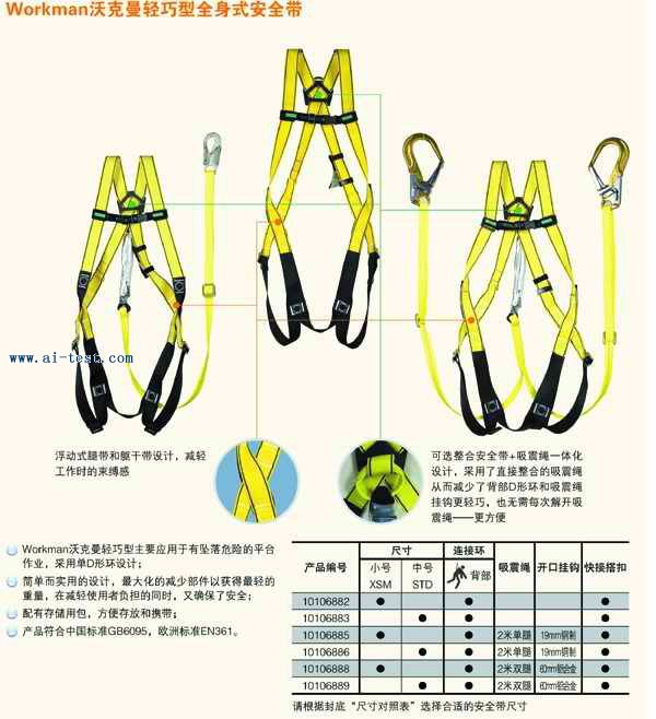 沃克曼輕巧型全身式安全帶 特點: