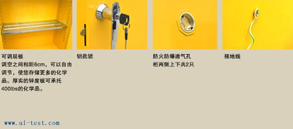 注:黃色安全柜僅適合存儲易燃、易爆即危險化學品