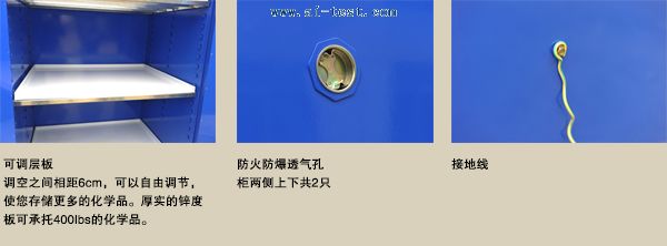 注:藍色安全柜僅適合存儲弱腐蝕性化學品
