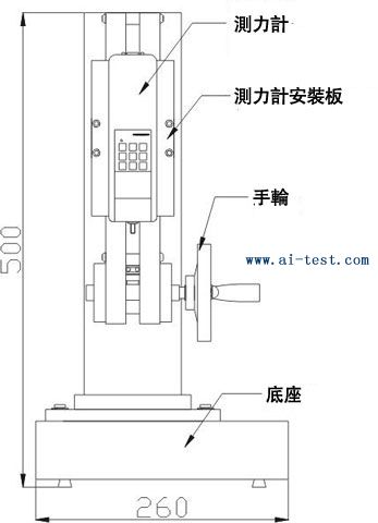 或安放在工作臺(tái)上合適的位置。旋轉(zhuǎn)測(cè)試架側(cè)面的手輪,測(cè)力計(jì)就能上下平穩(wěn)移動(dòng),完成測(cè)試工作。