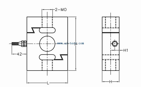 A631771 | S型拉壓式傳感器:額定載荷 Rated capacities(Emax):0.1,0.2,0.25,0.3,0.5,0.75,1,1.5, 2,3,5, 7.5,10, 15,20t;靈敏度 Sensitivity:2.0±0.002 mV/V;綜合誤差 Total error:±0.05%F.S;蠕變(30分鐘)Creep(30min):±0.03 %F.S;零點(diǎn)平衡 Zero balance:±1 %F.S;零點(diǎn)溫度影響 TCO:±0.03 %F.S/10℃;輸出溫度影響 TC SPAN:±0.03 %F.S/10℃;輸入阻抗 Input resistance :400 ±10 Ω;輸出阻抗 Output resistance:352 ±2 Ω;絕緣電阻 Insulation resistance:≥5000 MΩ;溫度補(bǔ)償范圍 Temperature range,compensated:-10~+40℃;工作溫度范圍 Temperature range,operating:-30~+70 ℃;安全過(guò)載 Maximum safe overload:120 %F.S;極限過(guò)載 Ultimate overload:250 %F.S;推薦激勵(lì)電壓 Excitation,recommend:10~12 V DC;最大激勵(lì)電壓 Excitation,maximum:15 V DC;防封等級(jí) Protection Class:IP65(0.1~5t),IP68(7.5~20t);材質(zhì) Construction:合金鋼Alloy Steel;電纜 Cable:Length:6m Diameter:φ5mm,;品牌:中國(guó) | 1 | 洽詢 | 洽詢 | 備注 |