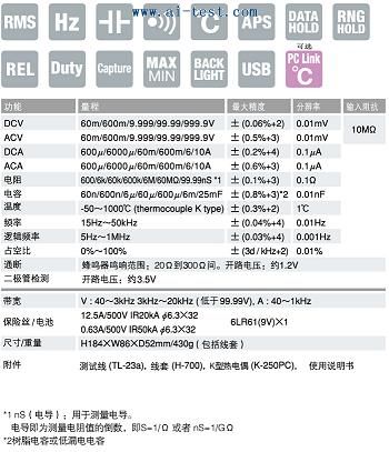 滿足用戶基本需求的數字萬用表功能 11 種基礎測量 5 種內置數學功… | 洽詢 | 6742 |