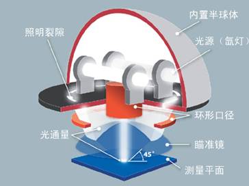 與以往的45/0光學系統分光測色儀相比,這種精密光學系統顯著改善了測量任意表面的重復性,消除了測量方向限制,并減