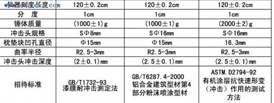該系列漆膜沖擊器用干以固定質量的重錘落于試板上而不引起漆膜破壞的最大高度 120 厘米表示的漆膜耐沖擊性試