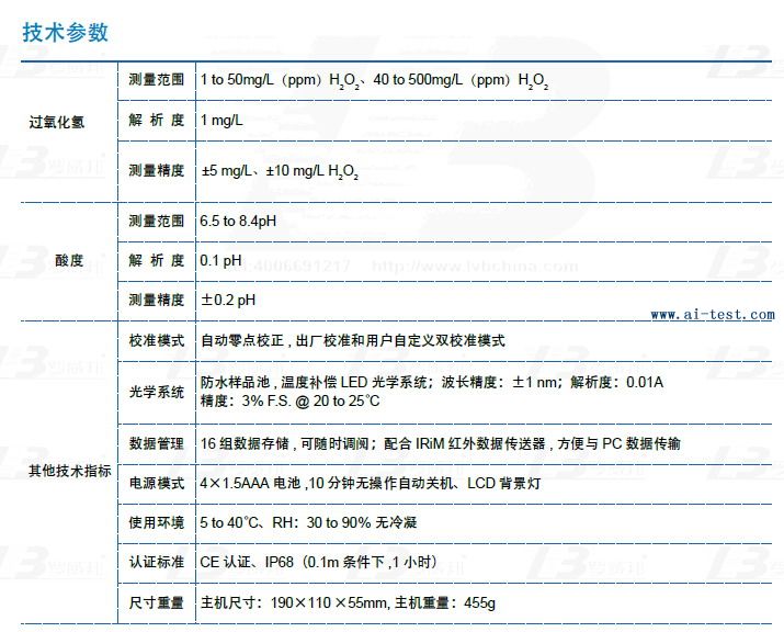 測量精度±5 mg/L、±10 mg/L H2O2 |