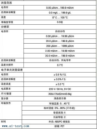 范圍 分辨率 精確度 電導率… | 洽詢 | 750 |