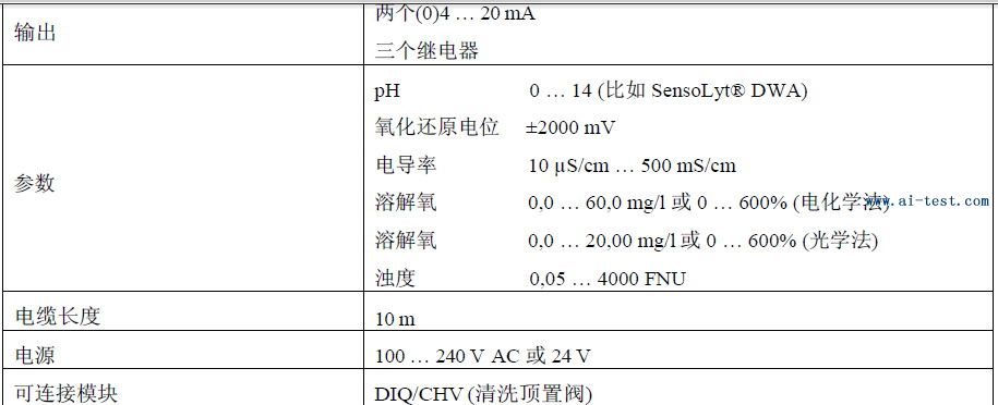 AL338024 | 在線電導率儀::在線電導率儀通用控制器,帶有兩個4-20mA 和三個繼電器。連接一個數字IQ 傳 感器,傳感器有固定電纜。主機配光學法FDO電極;品牌:德國WTW | 1 | 27500 | 備注 |