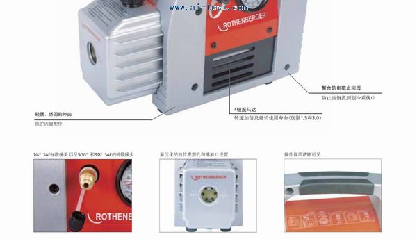 AM514750 | 真空泵:玻璃視窗易于觀察油位;泵流量:3.0CFM/85L/min;電機極數:4;電機轉速:250W1720r/m;油量:330ml;重量:10.7kg;品牌:德國ROTHENBERGER | 1臺 | 洽詢 | 洽詢 | 備注 | |