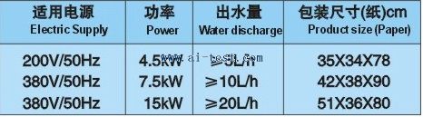 型號 出水量(L/H) 功率(KW) 電壓… | 洽詢 | 洽詢 |