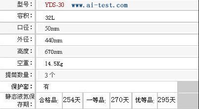 A130293 | 液氮罐:容積:32L;口徑:50mm;外徑:440mm;高度:670mm;空重:14.5kg;提筒數(shù)量:3個(gè);保護(hù)套:有;靜態(tài)液氮保存期:合格品:254天,一等品:270天;優(yōu)等品:295天;品牌:中國 | 1 | 5160 | 洽詢 | 備注 | |