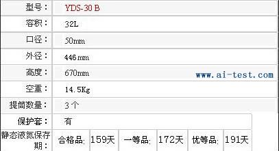 A130296 | 液氮罐:容積:32L;口徑:50mm;外徑:446mm;高度:670mm;空重:14.5kg;提筒數(shù)量:3個(gè);保護(hù)套:有;靜態(tài)液氮保存期:合格品:159天,一等品:172天;優(yōu)等品:191天;品牌:中國 | 1 | 5600 | 洽詢 | 備注 | |