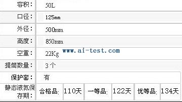 A130308 | 液氮罐:容積:50L;口徑:125mm;外徑:500mm;高度:850mm;空重:22kg;提筒數量:3個;保護套:有;靜態液氮保存期:合格品:110天,一等品:122天;優等品:134天;品牌:中國 | 1 | 9950 | 洽詢 | 備注 | |