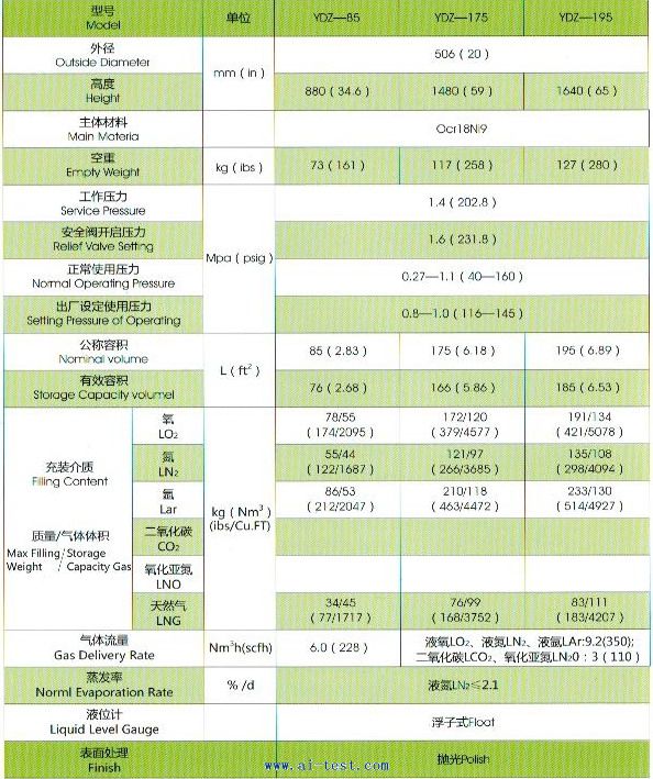 A130490 | 自增壓液氮罐:容積:175L;工作壓力:1.4Mpa;安全閥設置壓力1.6Mpa;總高:1480mm;外徑:506mm;凈重:117kg,品牌:中國 | 1 | 42500 | 洽詢 | 備注 | |
