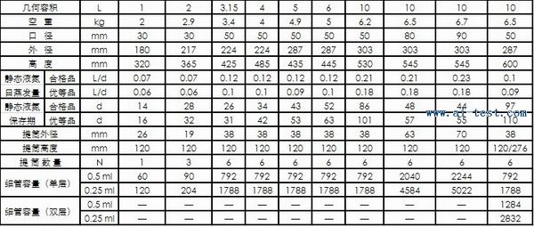 A101337 | 貯存型液氮生物容器:幾個容積L:10.0;空重kg:6.2;口徑mm:50;外徑mm:303;高度mm:530 ;靜態液氮日蒸發量l/d:0.18;靜態液氮保存期d:101;提筒外徑:mm:38 ;提筒高度mm:120 ;提筒數量:6 ;細管容量(單層)0.5ml和0.25ml:792和1788;品牌:中國 | 1 | 2025 | 洽詢 | 備注 | |