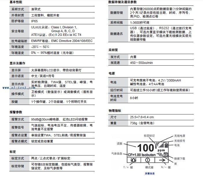 特種VOC檢測儀傳感器:;TVOC;傳感器類型:9.8/10.6/11.7eV;檢測范圍:0~99.99ppm 分辨率0.05ppm 響應時間(T90) <3s;檢測精度:標定點的±3% 校正系數:內置超過220種VOC氣體;檢測范圍:100~999.9ppm;分辨率:0.1ppm;響應時間(T90)<3s;檢測范圍:1000~9999ppm;分辨率 1ppm; 響應時間(T90)<3s;品牌:美國RAE |