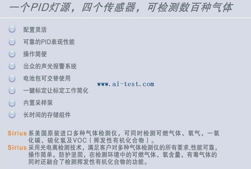 中的可燃氣體、氧含量、有毒氣體的同時還融合了檢測VOC(揮發性有機化合物)的功能。Sirius系美國原裝進口多種