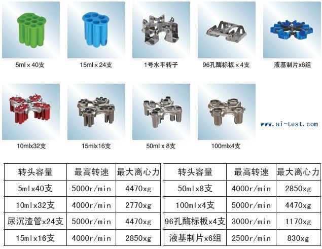 AL1332819 | 2號水平轉子(防蝕不銹鋼旋轉組件):最高轉速(max Speed):5000r/min;最大相對離心力(Max.RCF):4370×g ;適配器規格及容量:100ml*4支;品牌:中國 | 1 | 600 | 洽詢 | 備注 |