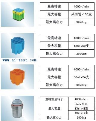 AL1332762 | 1號水平轉子:最高轉速:4000r/min;最大離心力:3970×g;適配器規格及容量:400ml血袋×4支;品牌:中國 | 1 | 洽詢 | 洽詢 | 備注 | |