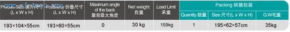 技術(shù)參數(shù): 展開尺寸(長×寬×高):183×45×5cm 凈重:6.5kg 毛… | 洽詢 | 550 |