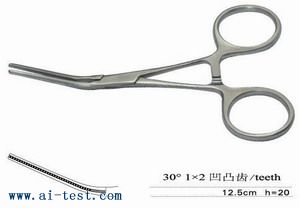 無(wú)損傷阻斷鉗;12.5cm 角彎 30°×20 1×2齒;品牌:中國(guó)。 |