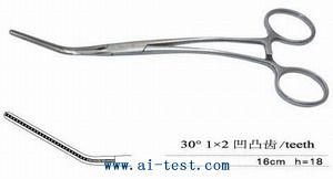 無(wú)損傷阻斷鉗;16cm 角彎 30°×18 1×2齒;品牌:中國(guó)。 |