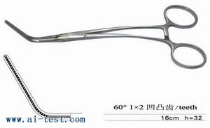 無(wú)損傷阻斷鉗;16cm 角彎 60°×32 1×2齒;品牌:中國(guó)。 |