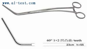 無(wú)損傷阻斷鉗;23cm 角彎 60°×55 1×2齒;品牌:中國(guó)。 |