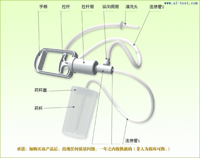 由清洗頭、手柄、拉桿、拉桿筒、閥筒、藥杯、連接管等組成。