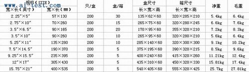 自封平口袋;規(guī)格:長×寬(英寸)15.75"×21;長×寬(mm)400×535;只/盒:200;盒/箱:5;凈重:25.7KG;毛重:27.8KG;品牌:中國。 |