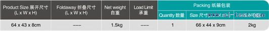 展開尺寸 (L×W×H) 折疊尺寸(L×W…
