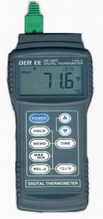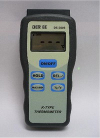 數字式溫度計LCD面板可顯示時間,自動換文件可測量最大/最小/平均值,最大/最小值鎖定測試范圍:-200℃-1370℃感應器:K-Ttype單通道準確度:±0.… |